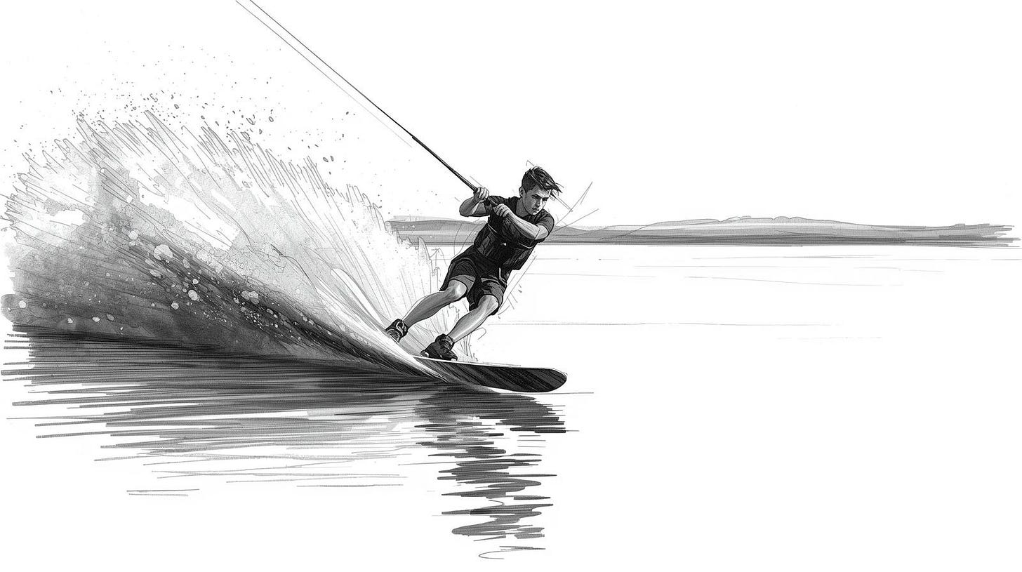 We started on the kneeboard, low and stable, close to the water. Then two skis, where balance suddenly mattered more and wobbles became part of the deal. Only later, when bodies had learned something about timing and tension, did one ski even become an option.